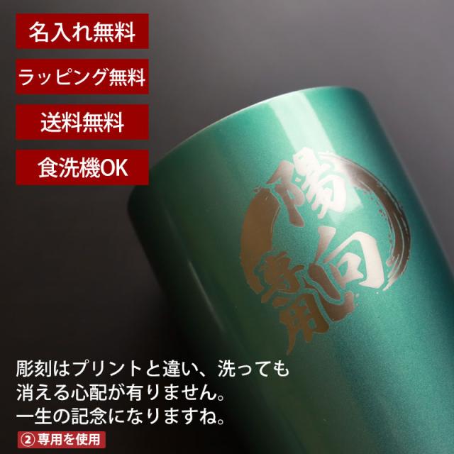・彫刻するお名前は「かごに追加」の前に「彫刻するお名前」欄へご記入下さい。 ・お名前は「漢字」または「ひらがな」の縦書きのみとなっております。 ・文字数によって文字サイズが異なります。 ・4文字以上は文字サイズが小さくなります。漢字で表記するなど3文字以内をおすすめいたします。 ・ご記入いただいたお名前をそのままコピーして使用いたします。お間違えの無いようご注意ください。 ・ご注文後、名入れ作業に取り掛かっている場合は変更、キャンセルは承れませんので、変更、キャンセルの場合は早急にご連絡ください。 ・タンブラーカラー「カカオ」はお名前(彫刻)の見え方が他のカラーに比べ薄く、柔らかく、さりげなく入る仕様です。 ・彫刻するお名前についてお問い合わせをさせていただいた場合、お返事をいただいてからの作業となります。 |