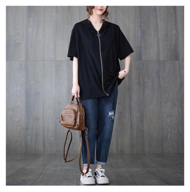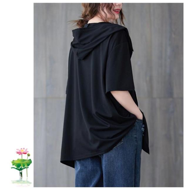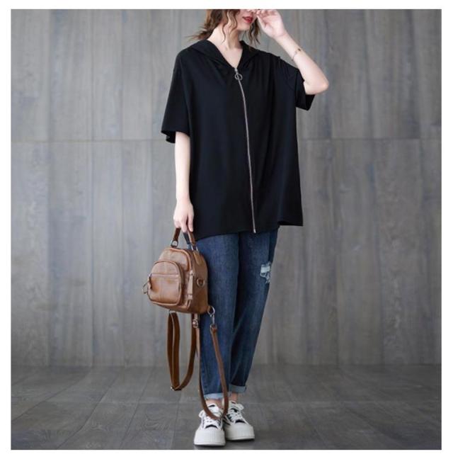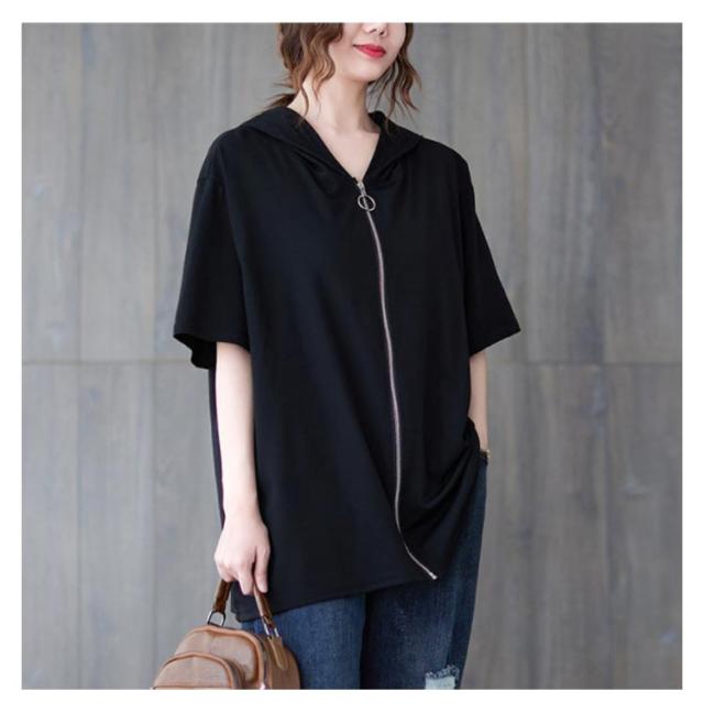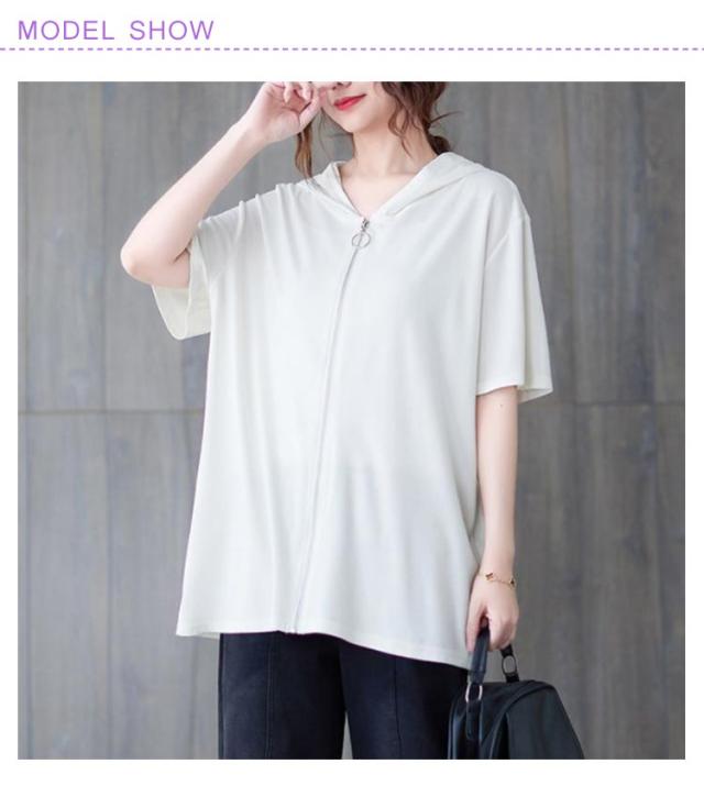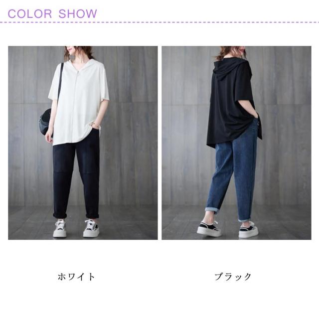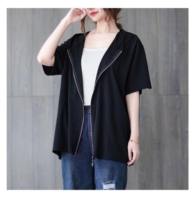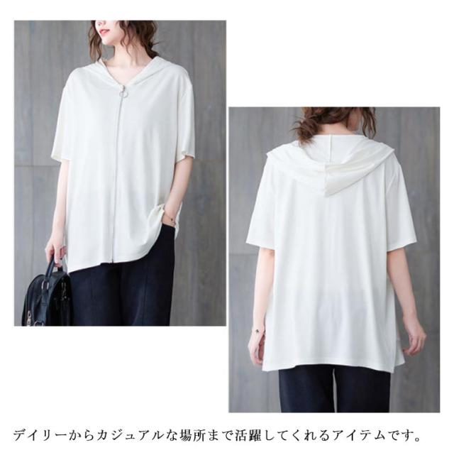 半袖パーカー ビッグシルエット レディース 前開き トップス 羽織り ビッグシルエット 五分袖 カジュアル フード付きパーカー おしゃれ 体型カバー M L XL 2XL 3XL 4XL