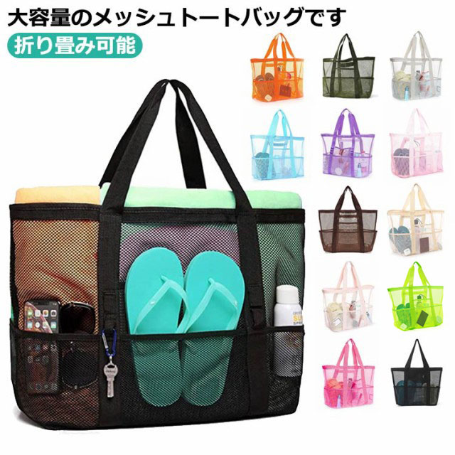 送料無料 メッシュバッグ ビーチバッグ ビーチトートバッグ プールバッグ メッシュ トートバッグ 軽量 大容量 スパバッグ 温泉バッグ 肩掛け 手提げ お風呂バッグ ジム 温泉 銭湯 プール 砂場 水泳 海水浴 水遊び バッグ 大きめ スイミングバッグ