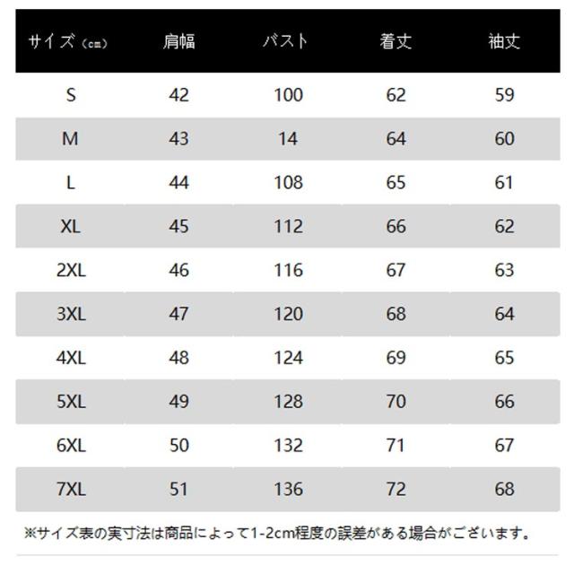 | サイズ | S M L XL 2XL 3XL 4XL 5XL 6XL 7XL |