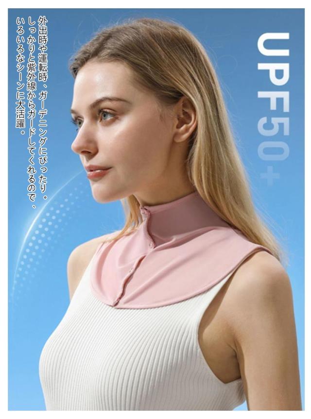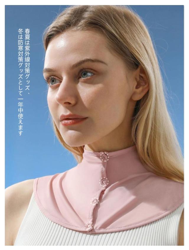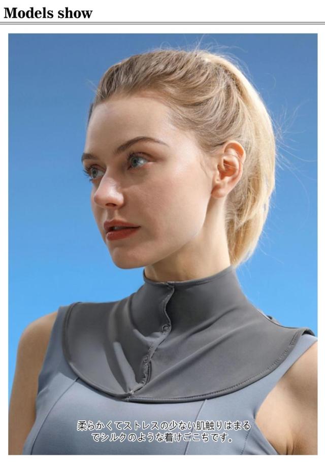 | 年齢が出やすいデコルテライン、首の日焼け防止! 柔らかくてストレスの少ない肌触りはまるでシルクのような着けごこちです。 襟の大きく開いた洋服でも首元?うなじまでしっかり紫外線からガードします。 襟ボタンにより開閉も自由自在。 外出時や運転時、ガーデニングにぴったり。しっかりと紫外線からガードしてくれるので、いろいろなシーンに大活躍。 春夏は紫外線対策グッズ、冬は防寒対策グッズとして一年中使えます♪ | |