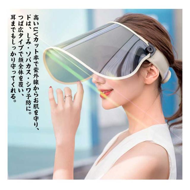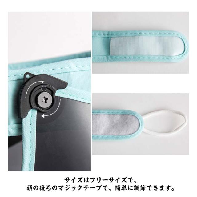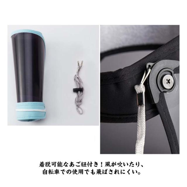 | ずれない!落ちない!ワイドタイプのサンバイザーです! 高いUVカット率で紫外線からお肌を守り、ドは、しみ・ソバカス・シワ予防に。 つば広タイプで顔全体を覆い、耳までもしっかり守ってくれる。 日差しの向きや雨の強さにより、つばの角度を360度変えられるので、とっても便利。 くるくると丸めて収納可能なサンバイザーなのでカバンにコンパクトに収納でき持ち運びに便利です。 バイザーのシールドは明るすぎず、濃すぎずちょうど良い加減で、晴雨兼用でお使いいただけます。 サイズはフリーサイズで、頭の後ろのマジックテープで、簡単に調節できます。 着脱可能なあご紐付き!風が吹いたり、自転車での使用でも飛ばされにくい。 バイザーが当たる額部分はメッシュバンドを使用し、クッション性+通気性もあり、快適な付け心地です。 自転車での使用はもちろん、アウトドアやガーデニング、スポーツ観戦、洗濯干しなどにもおすすめです。 | |