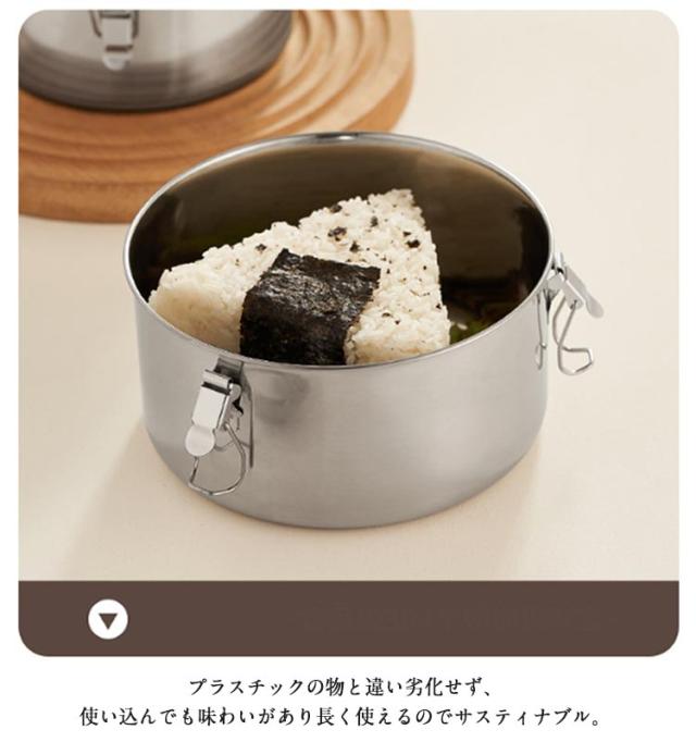 | ・シンプルなステンレス素材のランチボックス ・ステンレスなので、さびにくくて丈夫。汚れが落ちやすくお手入れも簡単です。 ・プラスチックの物と違い劣化せず、使い込んでも味わいがあり長く使えるのでサスティナブル。 ・パッキン付きなので万が一傾いても汁がこぼれにくくなっています。 ・直接火にかける事も出来る為、材料を入れておき現地で加熱するだけにしておけば、バーベキューやキャンプなどのアウトドアシーンでも活躍してくれます。 ・シンプルなデザインで子供から大人まで幅広くお使い頂けます。 ・中に仕切りがないので自由に詰めやすく、丼ものも入れられます。 | |