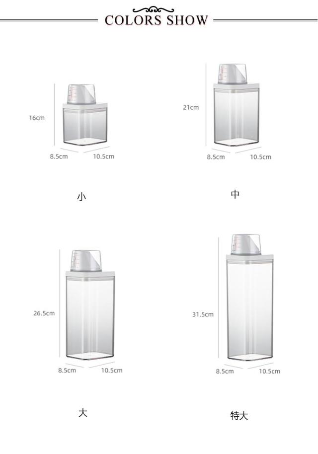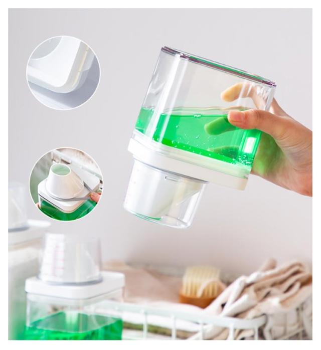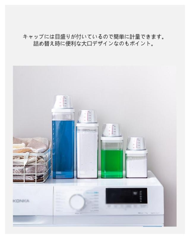 | 残量が一目瞭然クリアデザイン!市販の詰め替え用液体&粉洗剤を入れられる、洗濯用の詰め替えボトル。 キャップには目盛りが付いているので簡単に計量できます。 詰め替え時に便利な大口デザインなのもポイント。 | |