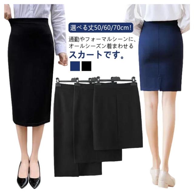 60cm ビジネススカート タイトスカート オフィス 就職 リクルート 大きいサイズ 事務服 スーツ ひざ丈 スカート ストレッチ 夏 ブラック スリット 70cm 通勤 5XL 事務服 ネイビー 春 50cm 秋 S M L XL 2XL 3XL スカート
