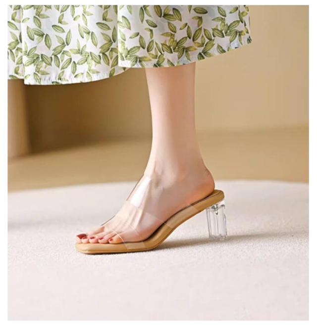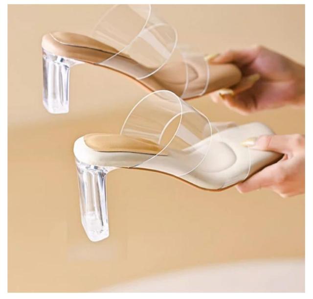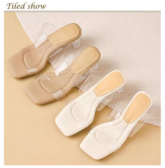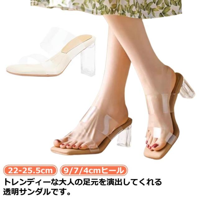 柔らかい履き心地!透明サンダル 美脚 レディース ダブルベルト クリアヒール 9/7/4cmヒール スリッパ 太ヒール シューズ サンダル チャンキーヒール 歩きやすい 靴 ストラップ 夏 ミュール 痛くない シューズ ハイヒール サンダル 太ヒール クリアサンダル