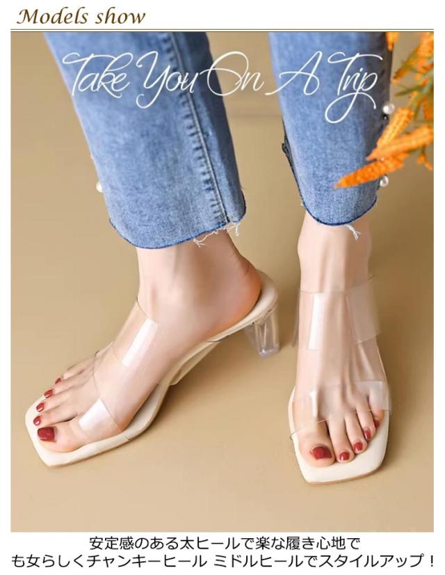 | トレンディーな大人の足元を演出してくれる透明サンダルです。 安定感のある太ヒールで楽な履き心地でも女らしくチャンキーヒール ミドルヒールでスタイルアップ! 結婚式・パーティにもおすすめ♪どんなコーデとの相性もバッチリ♪カジュアルすぎずキレイめに装えられるのでタウンからリゾートまで、今シーズンのお出かけに大活躍の予感! | |