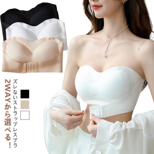 下着 シームレス ストラップレスブラ ずれない ストラップレス 肩ひも付き フロントフック 補正 ストラップレスブラ ストラップレスブラ おしゃれ きれいめ 背中見せ ブラジャー 2way おしゃれ 無地 通気 快適 美胸 夏 インナー 肌着 下着 脇高 大きいサイズ ノンワイヤー