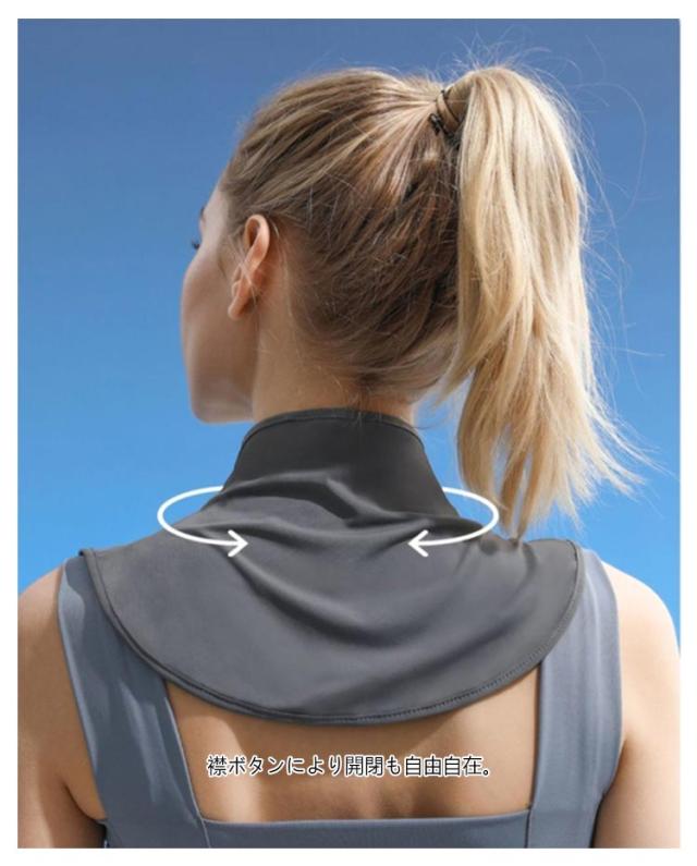 | 年齢が出やすいデコルテライン、首の日焼け防止! 柔らかくてストレスの少ない肌触りはまるでシルクのような着けごこちです。 襟の大きく開いた洋服でも首元?うなじまでしっかり紫外線からガードします。 襟ボタンにより開閉も自由自在。 外出時や運転時、ガーデニングにぴったり。しっかりと紫外線からガードしてくれるので、いろいろなシーンに大活躍。 春夏は紫外線対策グッズ、冬は防寒対策グッズとして一年中使えます♪ | |