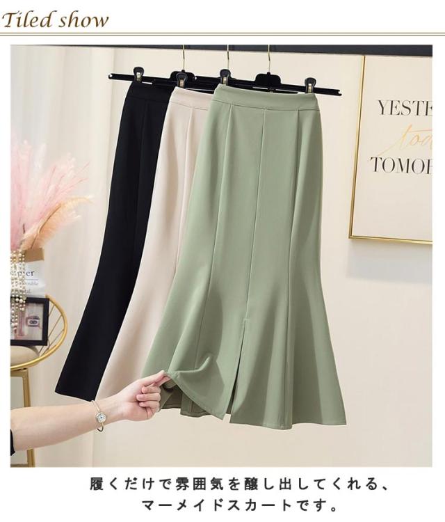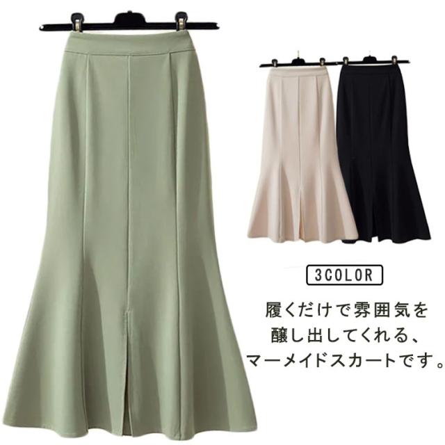 スリット入り ミモレスカート ロングスカート スカート マーメイドスカート タイト 春夏秋 ハイウェスト レディース フレアスカート きれいめ おしゃれ 大人 エレガント オフィス 通勤 OL