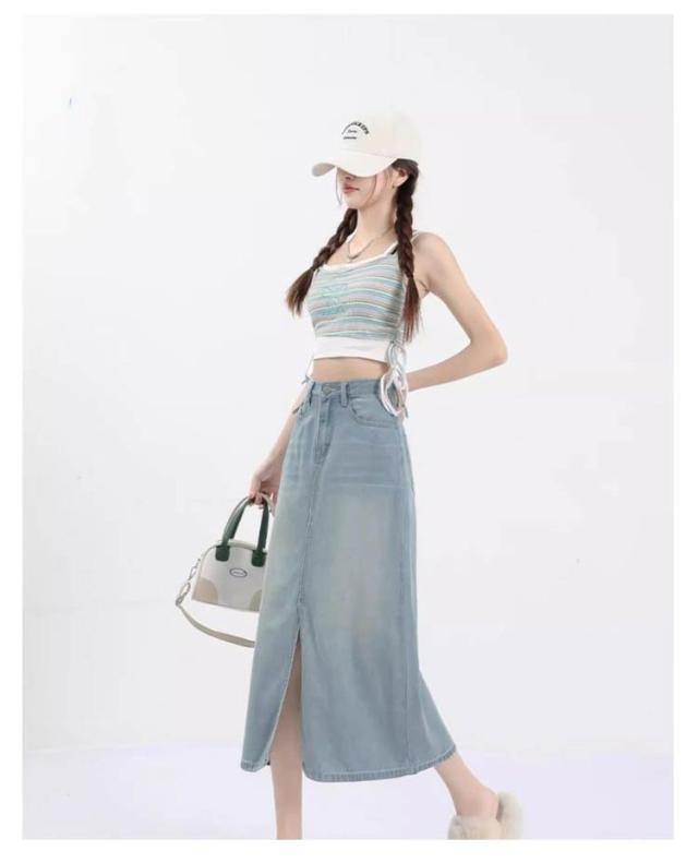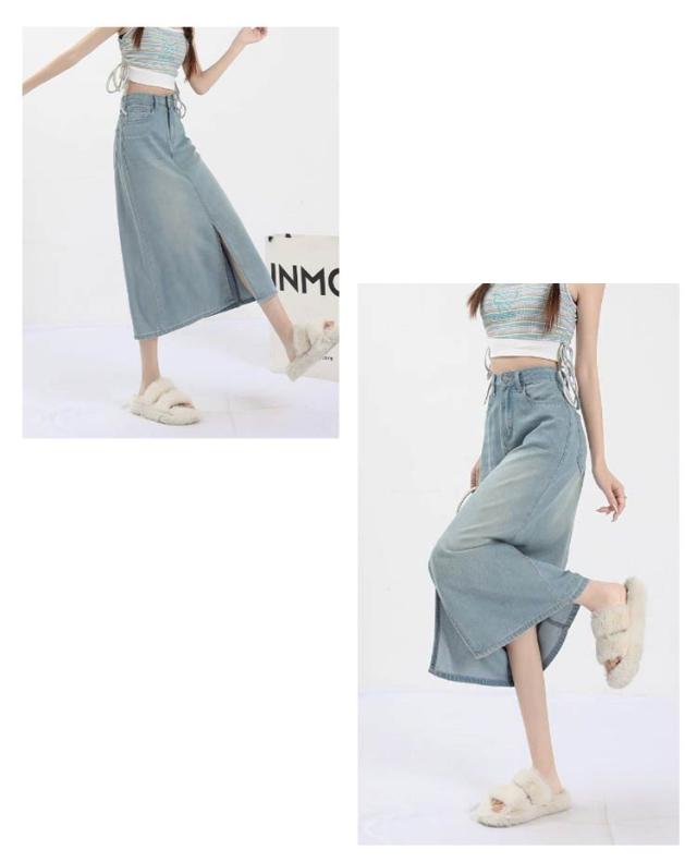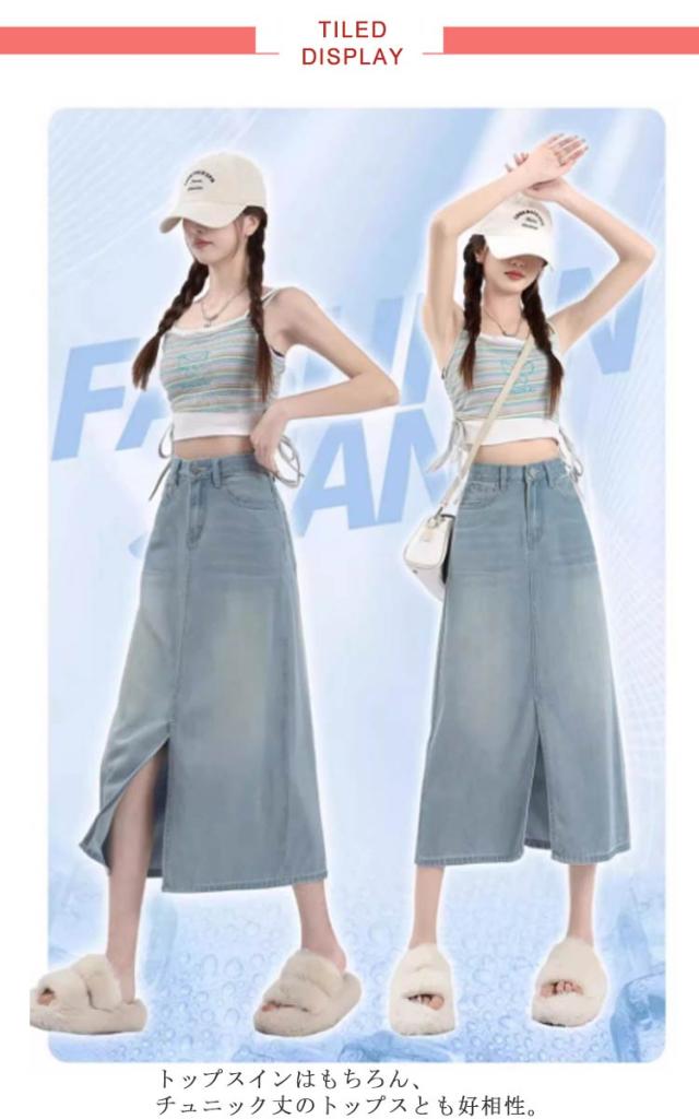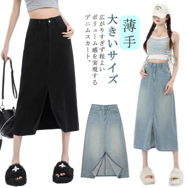 レディース フロントスリット デニムスカート 接触冷感 テンセルデニムスカート ロング丈 ひんやりデニム スカート 膝下丈 薄手 Aライン 春夏 大きいサイズ