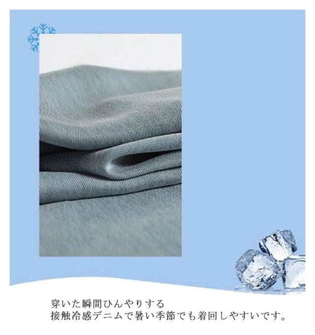 | 広がりすぎず程よいボリューム感を実現するデニムスカート。 すっきりした腰周りから裾にかけてきれいなAラインを描くデザイン。 膝下にかかる長めの着丈が大人っぽさを演出。 深めのフロントスリット入りで動きに邪魔しません。 穿いた瞬間ひんやりする接触冷感デニムで暑い季節でも着回しやすいです。 トップスインはもちろん、チュニック丈のトップスとも好相性。 | |