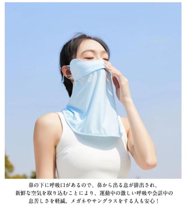 | 暑い時期に嬉しいひんやり接触冷感&UVカット機能付きフェイスカバー。 日焼け止めやファンデーションの塗りにくい、あごの下・首までしっかり紫外線をカット! 鼻の下に呼吸口があるので、鼻から出る息が排出され、新鮮な空気を取り込むことにより、運動中の激しい呼吸や会話中の息苦しさを軽減。メガネやサングラスをする人も安心! また、UVカット加工を施した素材、爽やかな着心地。さらっと風通しよく、ガーゼのようにソフトな肌触り。 長時間の着用でも息苦しくなく快適に過ごすことが出来ます。洗って繰り返し使えるのでとっても清潔でエコ&経済的です。 おしゃれな4色のカラバリで、ファッションも楽しめます! | |