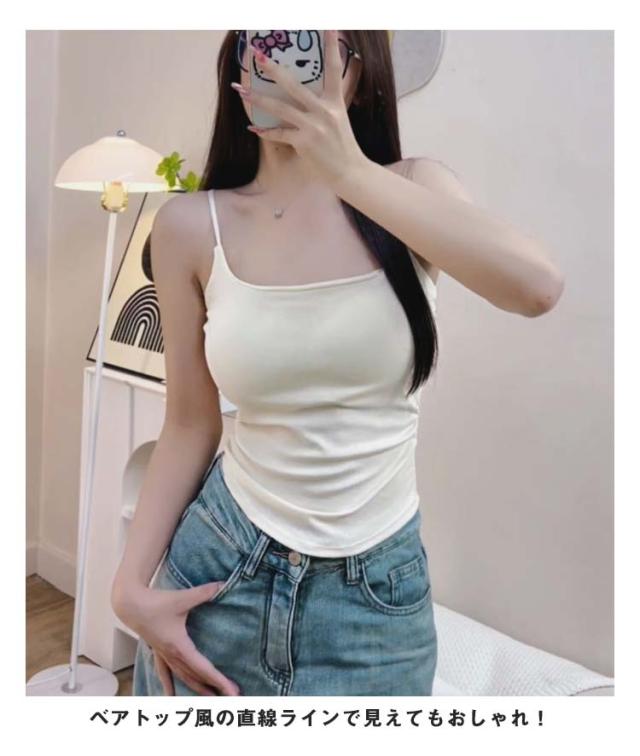 カップ付き キャミソール おしゃれ トップス ベアトップ ノンワイヤー チューブトップ カップ付きキャミソール 無地 インナー 肩紐 タンクトップ レディース カップ付きインナー シンプル ローストラップ パッド付