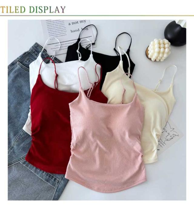 | 【カップ付きキャミソール】【5colors】 ジャケットやシャツのインナー着としてはもちろん、カップ付きだからこれ一枚で着てもOKなトップスです。 通気性に優れているので蒸し暑くなく、固定バストカップでズレる心配なし、ノンワイヤーでストレスゼロの着心地。 ベアトップ風の直線ラインで見えてもおしゃれ! 露出度高めなのに胸元のラインを強調しすぎず、清潔感のあるキャミソールトップス。 トレンドのシアーシャツと合わせて透けさせて着るとおしゃれ。 | |
