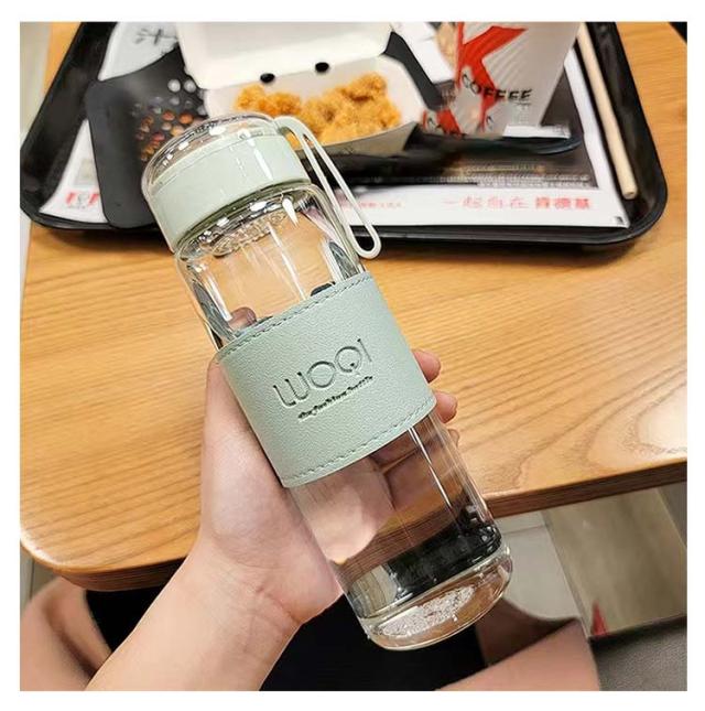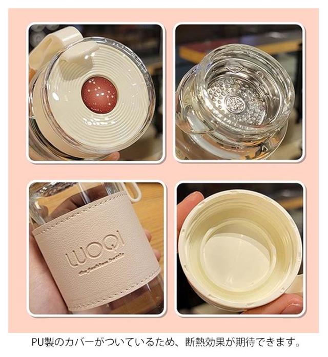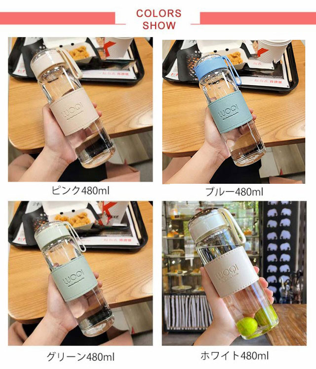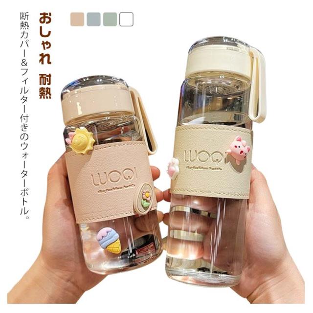 軽量 ボトル 漏れ防止 フィルター付き シンプル ウォーターボトル 透明 ガラス ガラス 大容量 断熱カバー付き 水筒 おしゃれ 480ml 耐熱 ボトル 直飲み 水 お茶 ドリンクボトル マイボトル 水筒 男女兼用 持ち運び 仕事 おしゃれ 可愛い アウトドア 通勤 スポーツ 耐冷