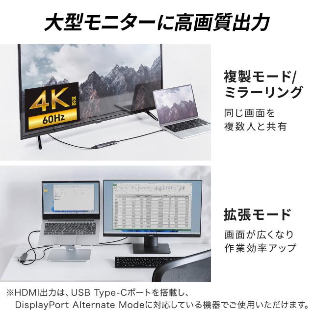 ●HDMI出力4K/60Hz対応で、ソフトウェアのインストールなしで簡単にマルチディスプレイ環境