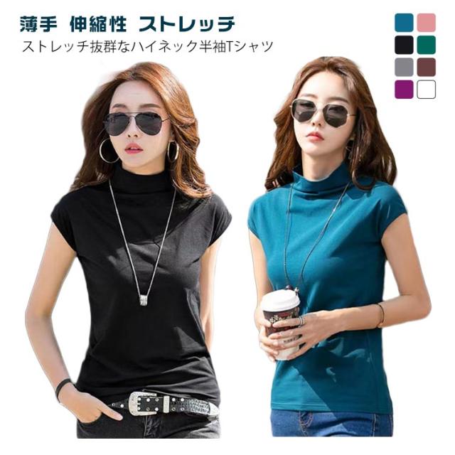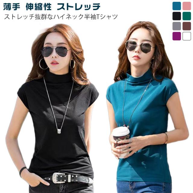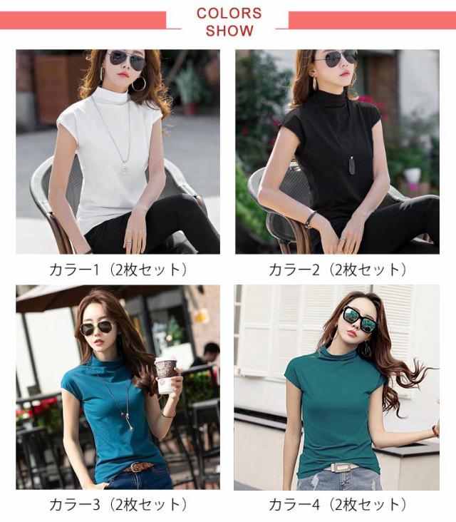 2枚セット!レディース カットソー ハイネック 半袖 カットソー ノースリーブ 袖なし タートルネック フレンチスリーブ 薄手 伸縮性 ストレッチ ハイネックTシャツ 無地 半袖Tシャツ トップス プルオーバー カジュアル 大人 大きいサイズ 春夏 送料無料