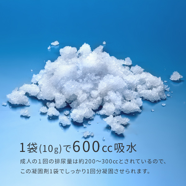 振りかけるだけで固まる凝固剤1袋(10g)で約600ccを吸水します。