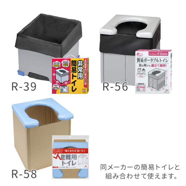 避難用トイレ(R-58)、簡易ポータブルトイレ(R-56)、非常用簡易トイレ(R-39)にセットしてお使いいただけます。