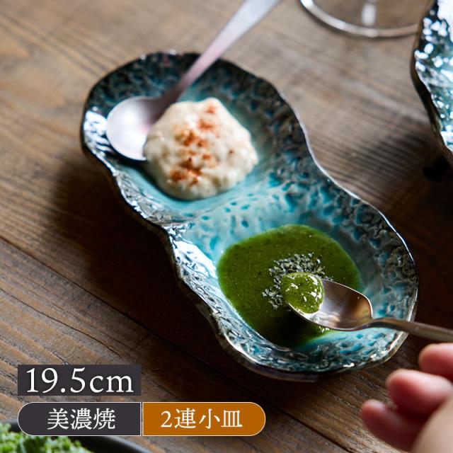 2連小皿 19.5cm KANADE 陶器 レンジ可 和食器 和食器 日本製 美濃焼 おしゃれ 和モダン シンプル シック プレート お皿 皿 食器 小皿 醤油皿 薬味皿 珍味皿 フルーツ皿 菓子皿 小さい皿 かわいい皿