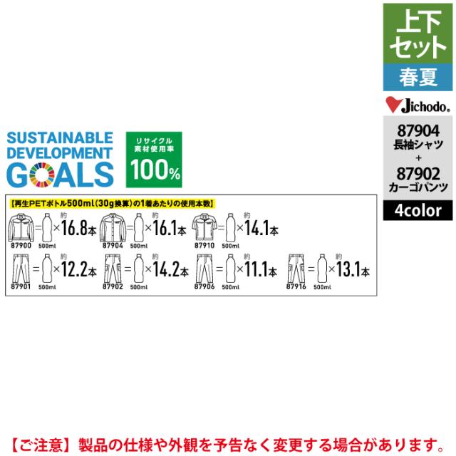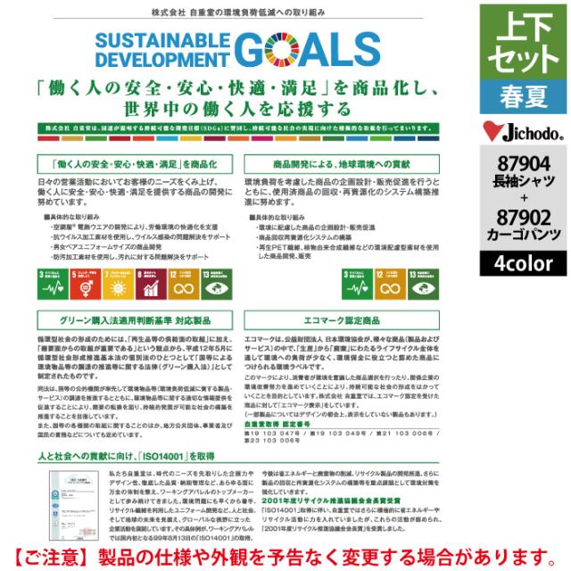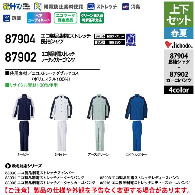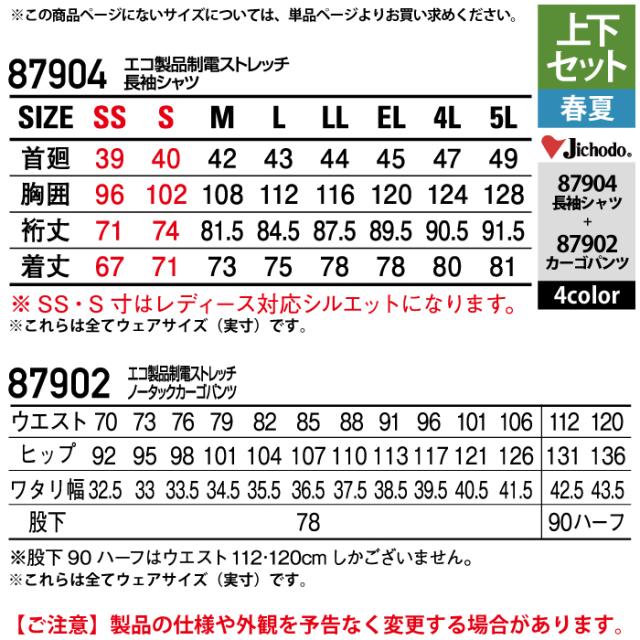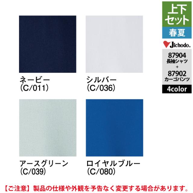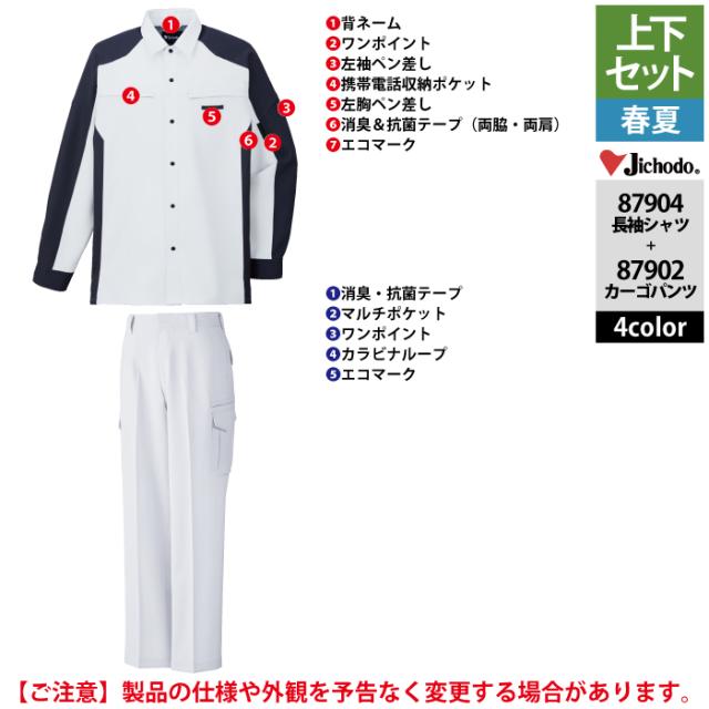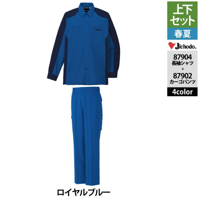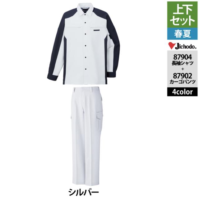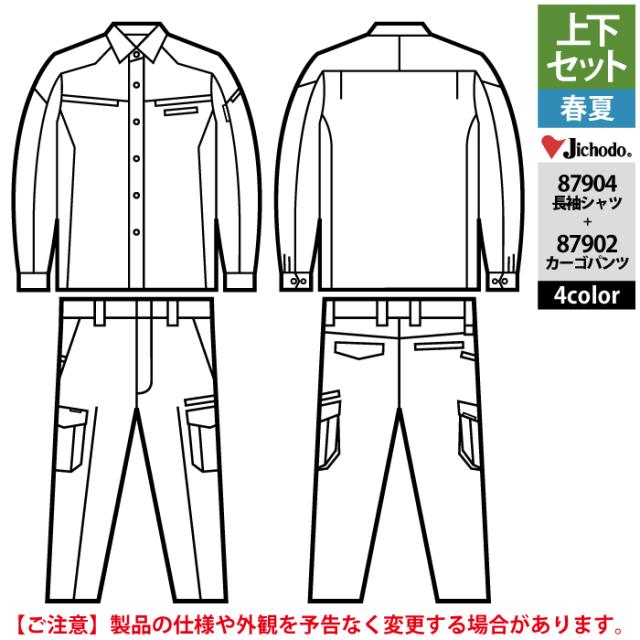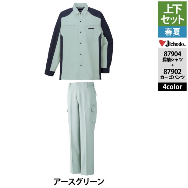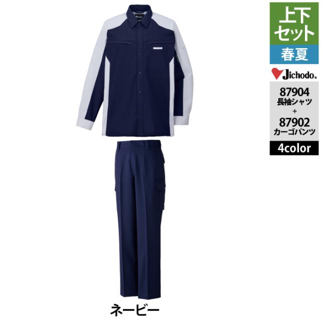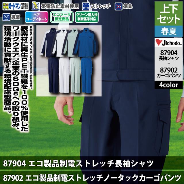 自重堂 作業服 上下セット 87904 ストレッチ長袖シャツS-EL と 87902 ストレッチノータックカーゴパンツ 70-101 作業ズボン 春夏用 作業着