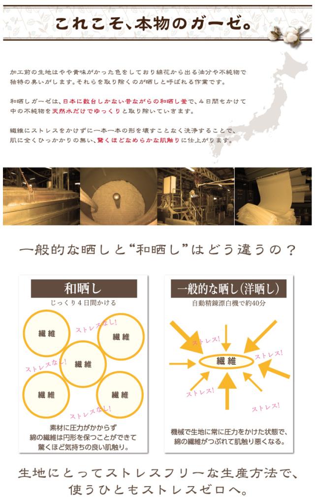 | 仕 様 | 多層構造 無添加和晒し98本ガーゼ |