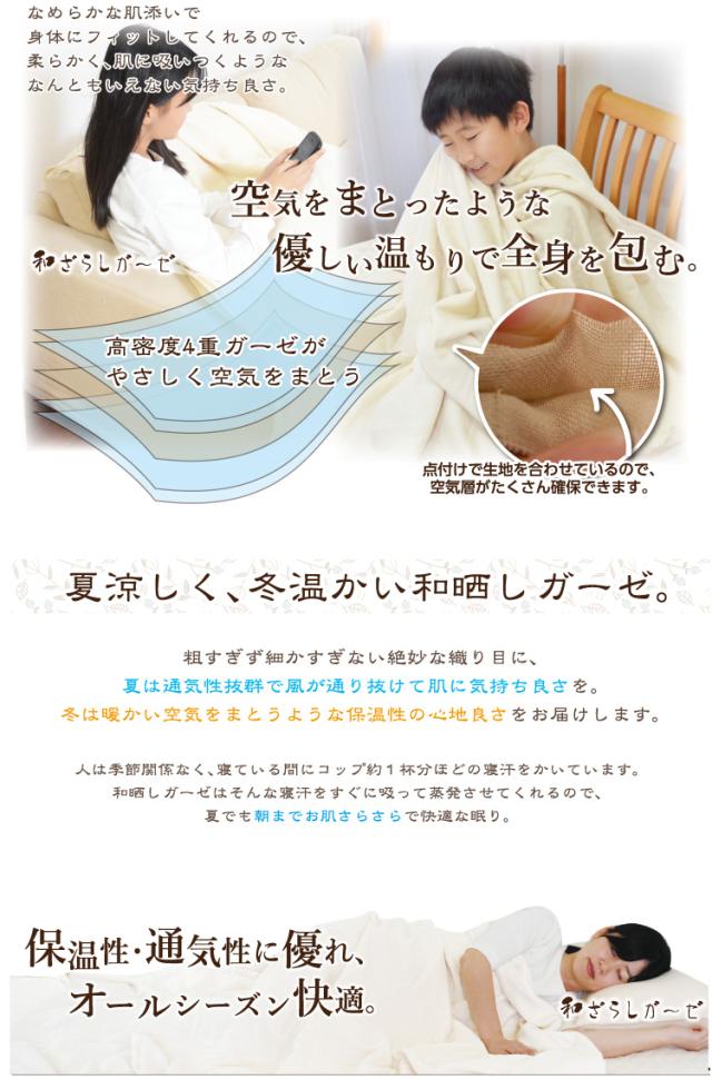 全て高密度で贅沢な4重和晒しガーゼとHOLMIC?が初コラボ!!お洗濯するほど『とろふわで気持ちいい』オールシーズン使える最高に幸せな薄掛け布団☆素肌に直接ご使用下さい
