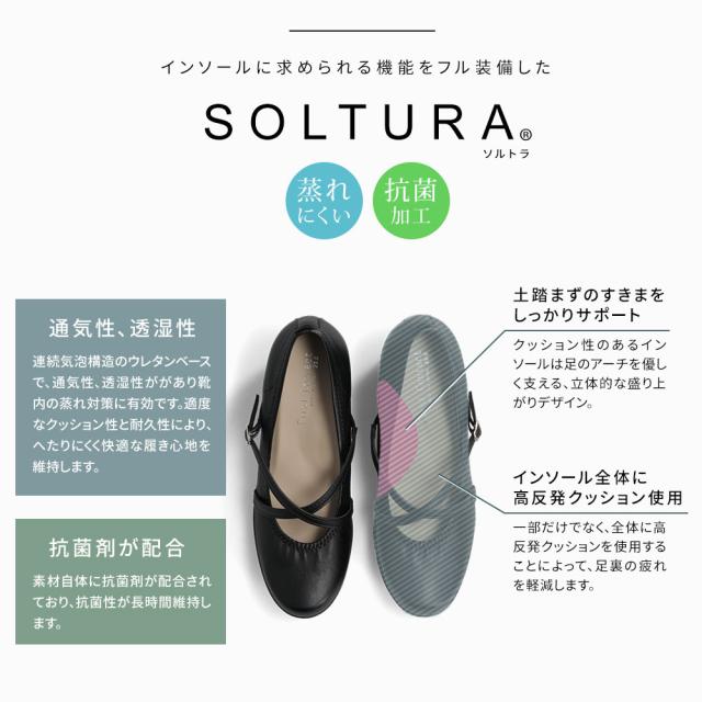 中敷きには通気性・耐久性・抗菌性の機能を持つ快適クッション SOLTURA(ソルトラ)を使用。