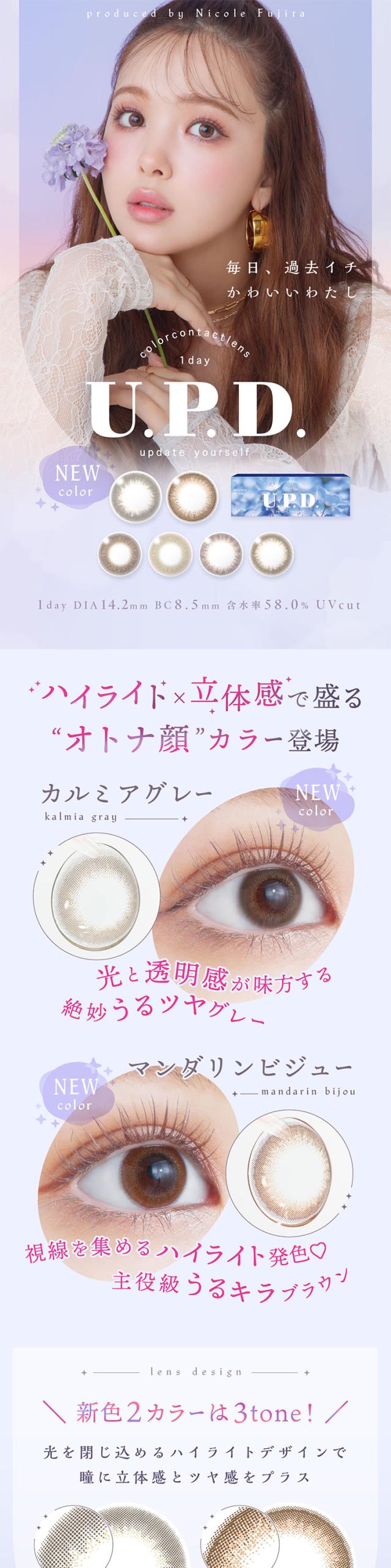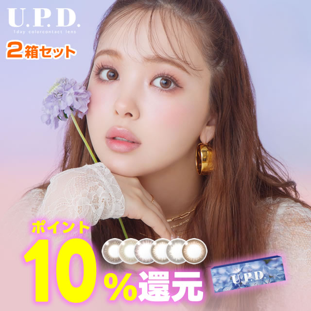 ★ポイント10%還元★藤田ニコル カラコン★メール便送料無料★ アプデ(U.P.D)10枚 2箱セット ◆ にこるん プロデュースカラコン 度あり 度なし DIA 14.2mm カラーコンタクト U.P.D. UPD ナチュラル 自然 透明感 ちゅるん 色素薄い系 盛れる プリ盛れカラコン ◆