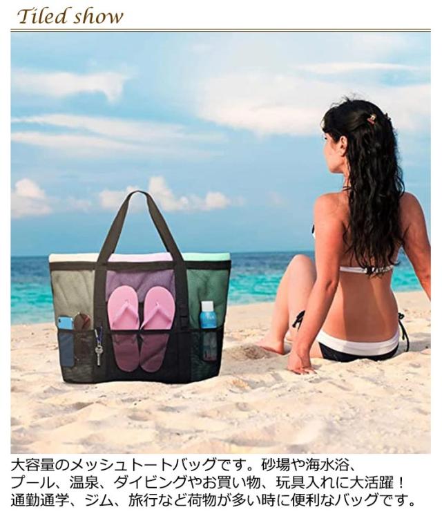 送料無料 メッシュバッグ ビーチバッグ ビーチトートバッグ プールバッグ メッシュ トートバッグ 軽量 大容量 スパバッグ 温泉バッグ 肩掛け 手提げ お風呂バッグ ジム 温泉 銭湯 プール 砂場 水泳 海水浴 水遊び バッグ 大きめ スイミングバッグ