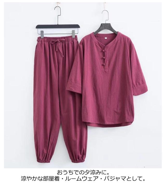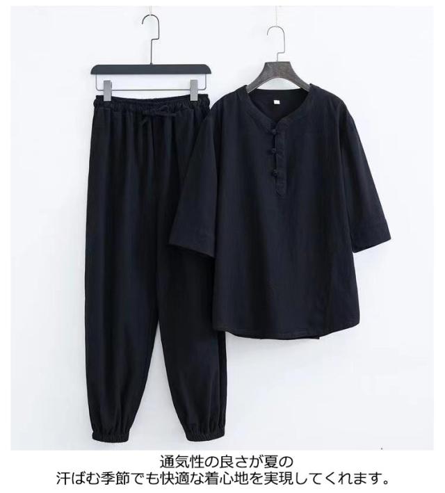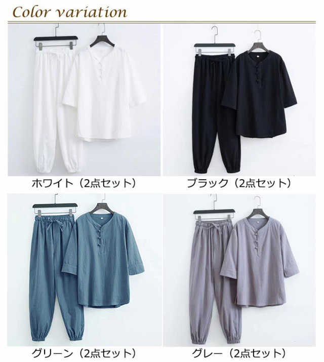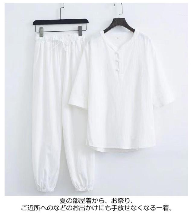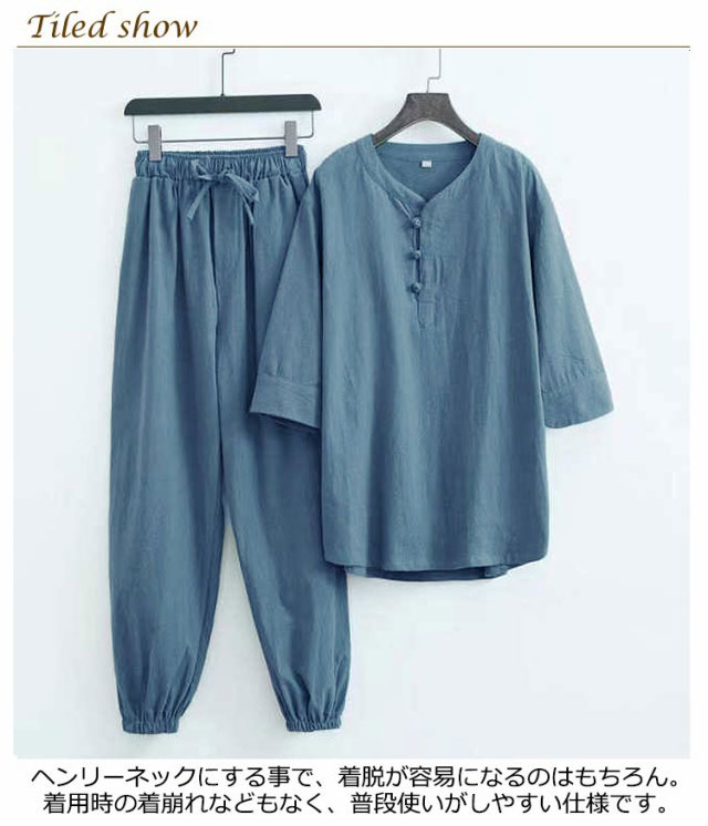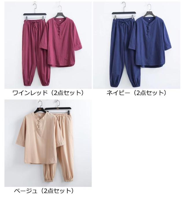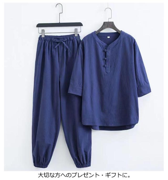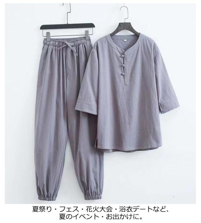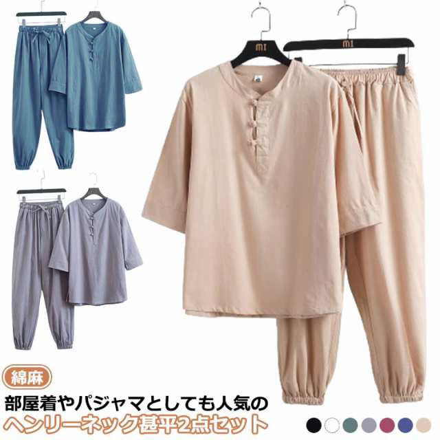 部屋着 じんべえ 甚平 綿麻甚平 2点セット 綿 ロングパンツ ヘンリーネック メンズ 男性 上下セット 半袖 おしゃれ 甚平 綿麻 じんべい シンプル 部屋着 夏物 大人 リネン パジャマ 麻 ルームウェア セットアップ 紳士 涼しい 大きいサイズ 夏祭り 男性和服 父の日