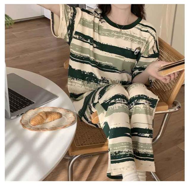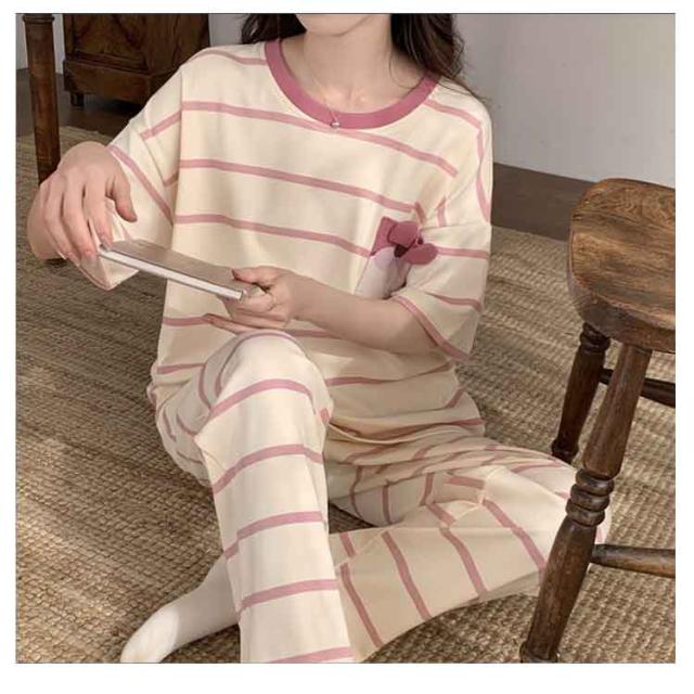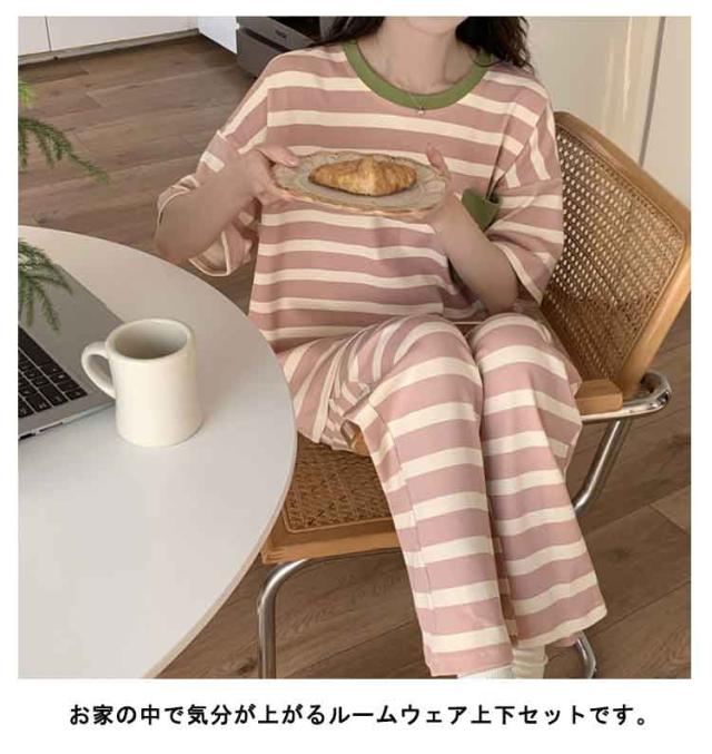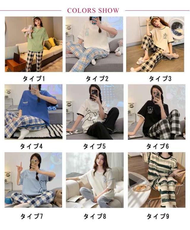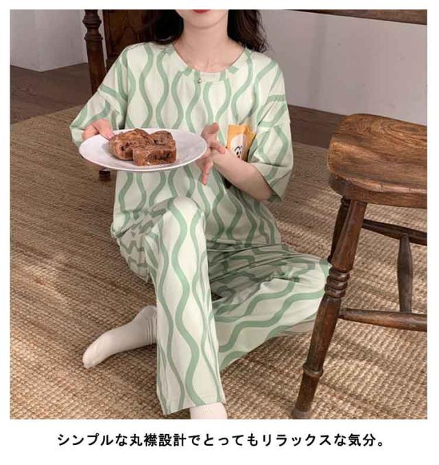 ルームウェア 寝巻き ロング レディース 綿混 上下セット ワンマイルウェア セットアップ ルームウェア パンツ パジャマ 寝間着 夏 半袖 tシャツ コットン混 部屋着 2点セット 半袖tシャツ 五分袖 5分袖 ラウンドネック 丸首 ポッケト チェック 柄 可愛い おしゃれ