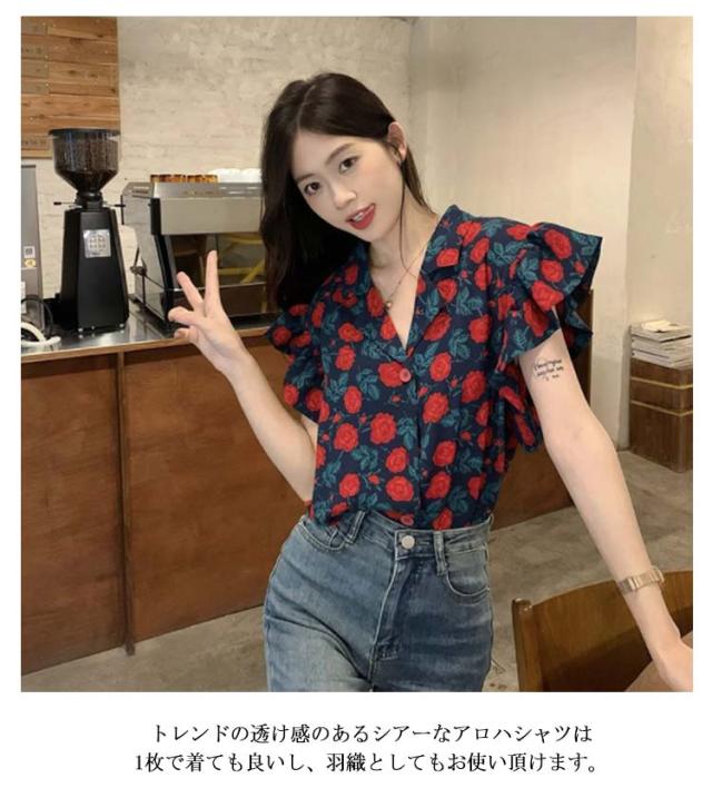 レディース ブラウス 花柄 半袖シャツ 韓国ファッション シャツ シャツ アロハシャツ 夏 ブラウス 襟 開襟 春 トップス 春服 夏服 半袖 カジュアル 柄シャツ アロハ 涼しい 涼感 韓国 速乾 通気性 超軽量 UV対策 ビーチウェア おしゃれ