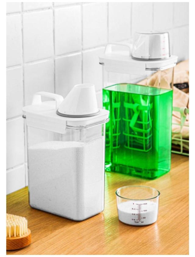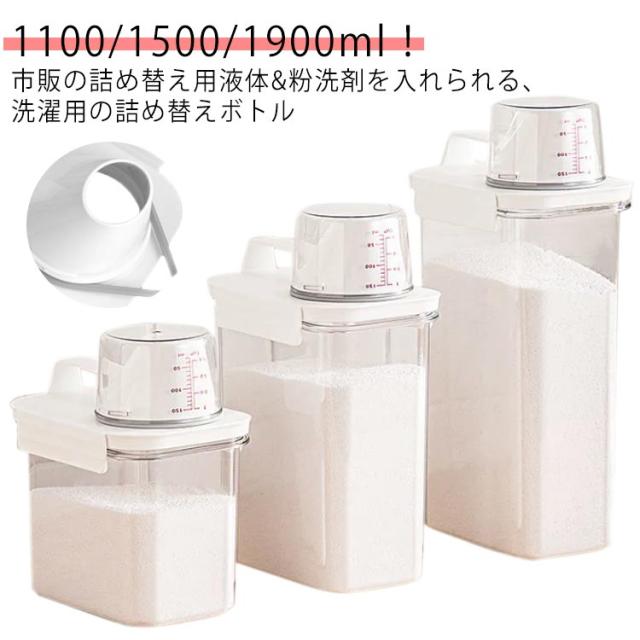 | 1100/1500/1900ml!市販の詰め替え用液体&粉洗剤を入れられる、洗濯用の詰め替えボトル ボトルキャップにはメモリが付いているので簡単に計量できます♪ 詰め替え時に便利な大口デザインなのもポイント◎ クリアのデザイン、残量が一目瞭然! | |
