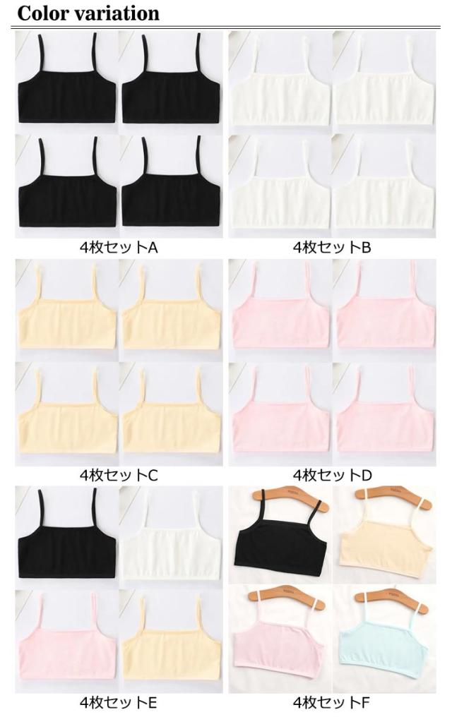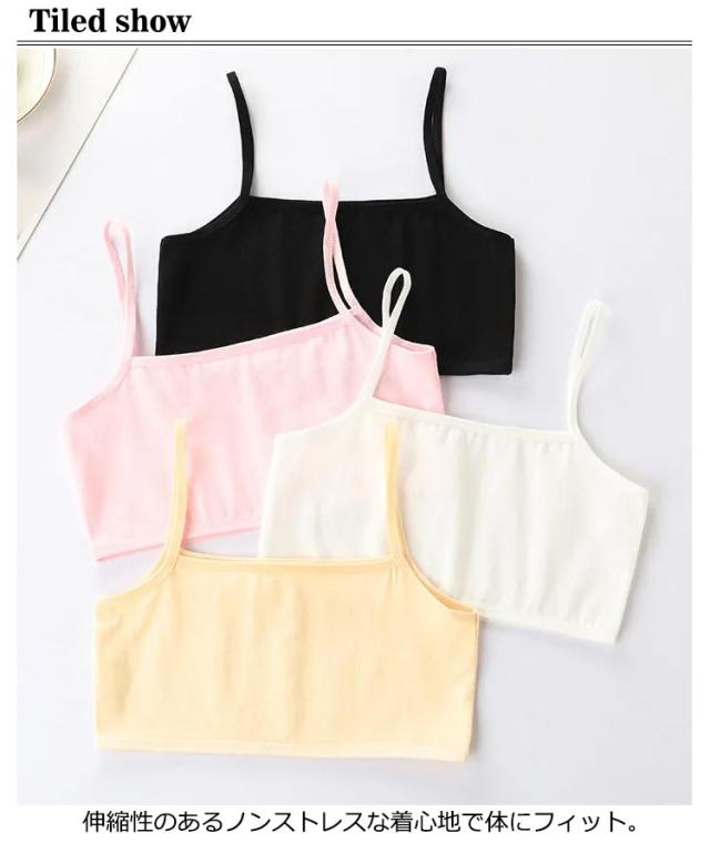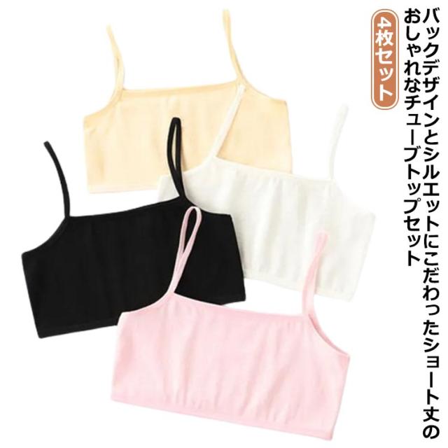4枚セット ジュニア 下着 女の子 無地 綿 キッズ キャミソール キッズ 小学生 中学生 ダンス衣装 ヒップホップ チューブトップ インナー 子供服 肌着 女児 アンダーウェア ブラトップ シンプル 4枚セット 薄手 M L