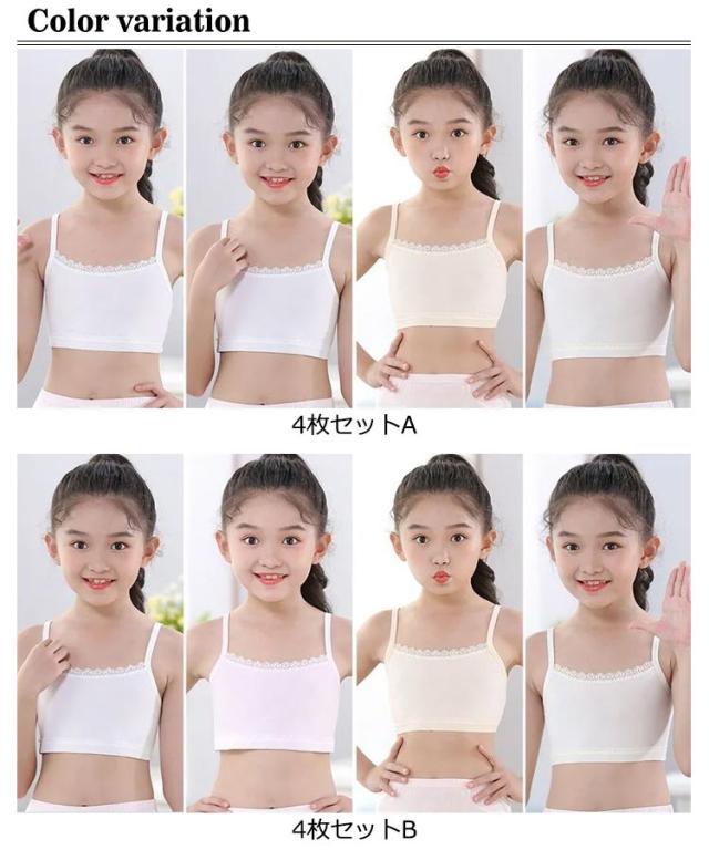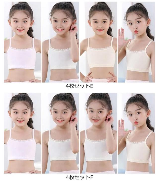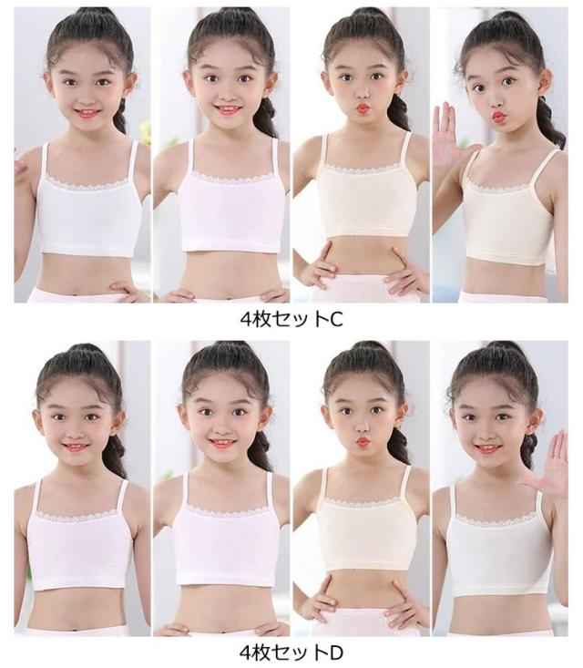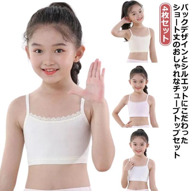 インナー キャミソール チューブトップ 女の子 キッズ 4枚セット 無地 小学生 チューブトップ 柔らかい 子供服 中学生 ダンス衣装 ヒップホップ ジュニア ショート丈 肌着 下着 女児 アンダーウェア ブラトップ S M L
