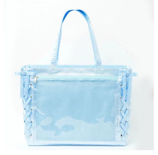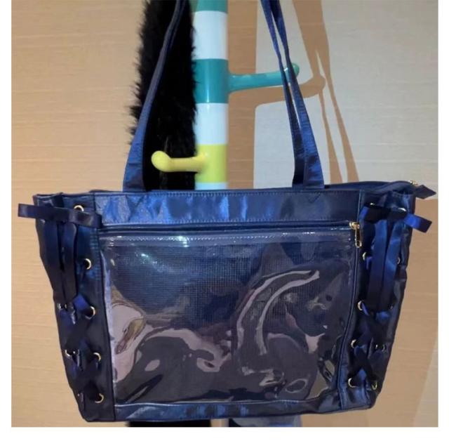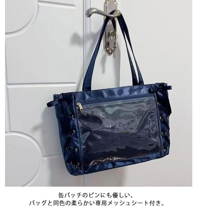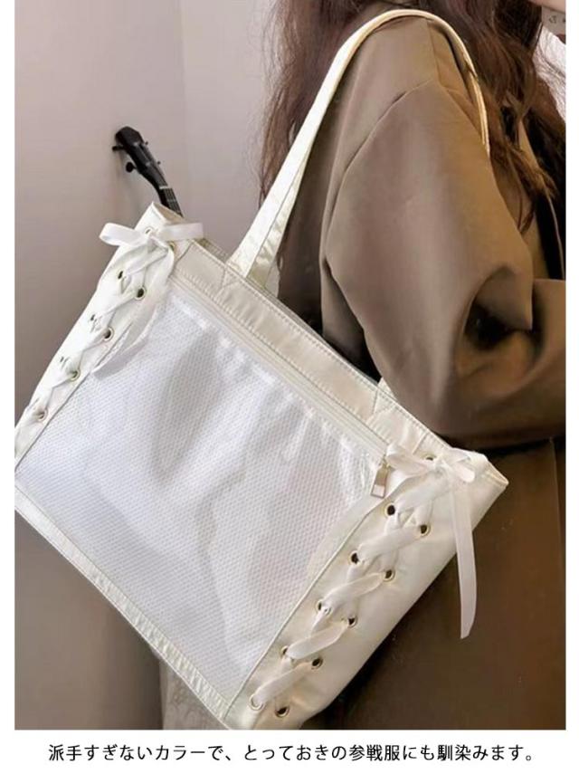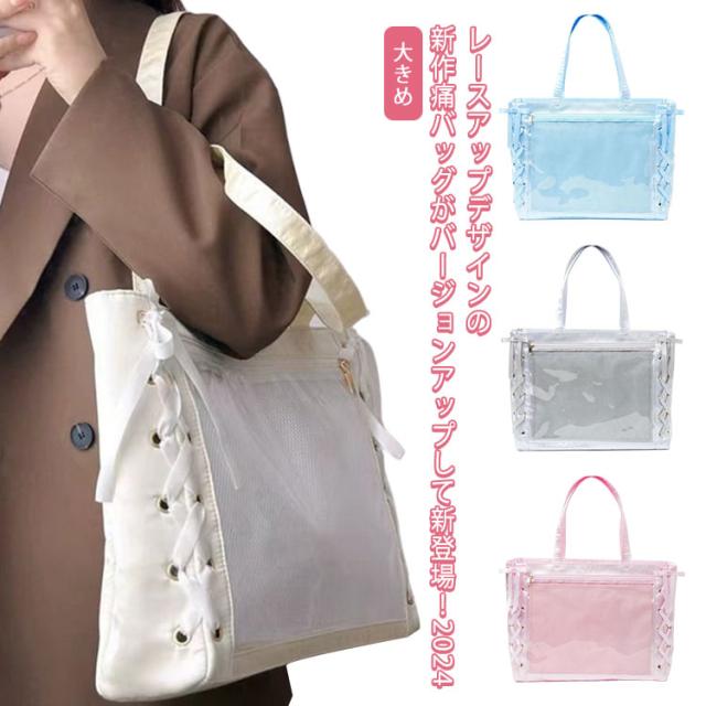 レースアップ トート 推し活 大人 学生 見せバッグ ぬいぐるみ a4 痛バッグ クリアバッグ レディース りぼん付き 大きめ 用 【送料無料】痛バ ライブ用 トート レザー調 缶バッジ イベント用 かわいい 無地