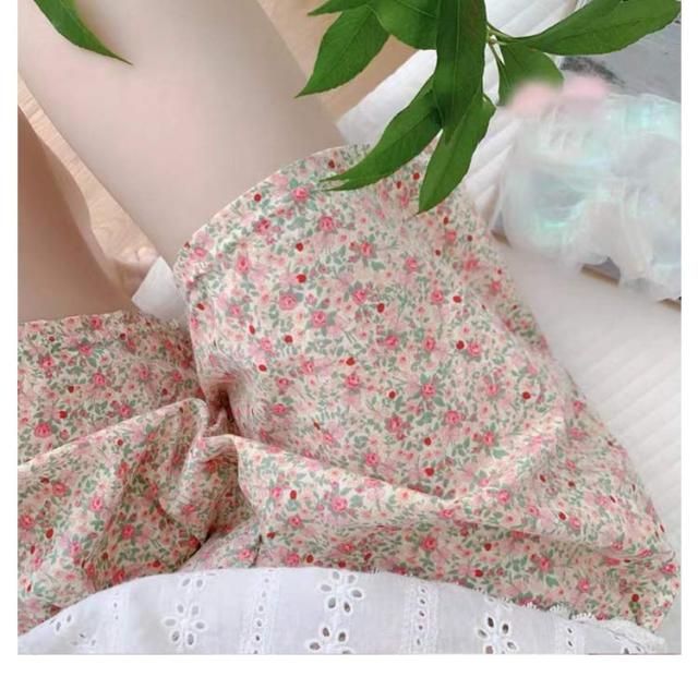 | ちょっとレトロな感じの花柄がかわいいです。 薄手の生地なので真夏の部屋着にも良さそうです。 | |