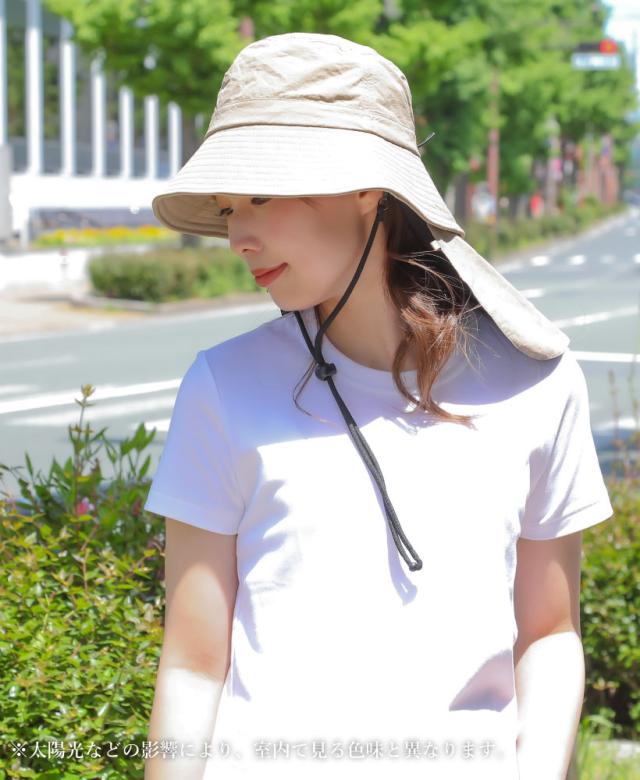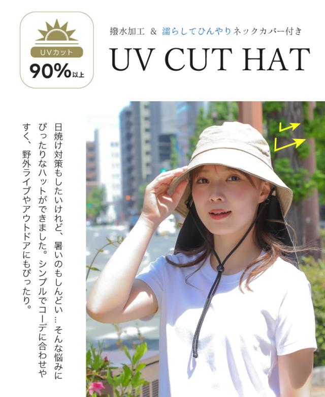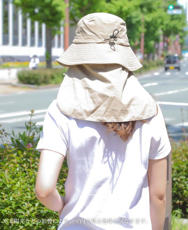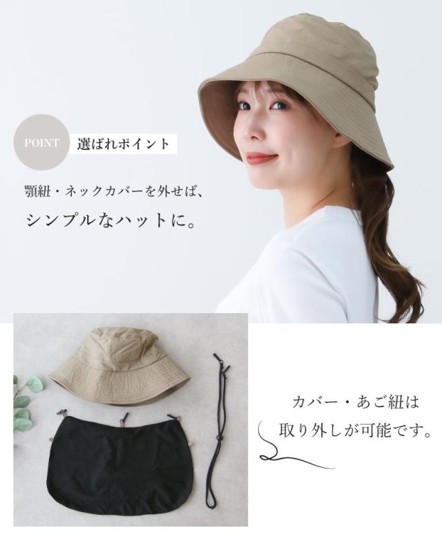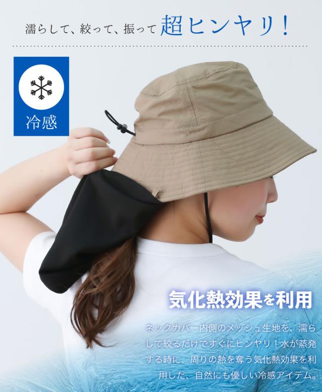 【メール便1枚のみ送料無料】撥水冷感ネックカバー付きハット HAT UV あご紐 ひんやり サイズ調整可能 アジャスター付き 内側メッシュ 抗菌防臭【P】【M】