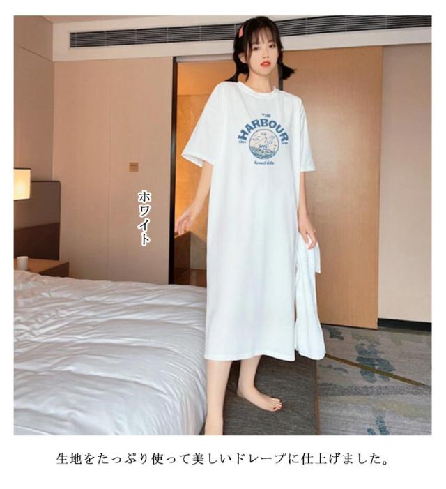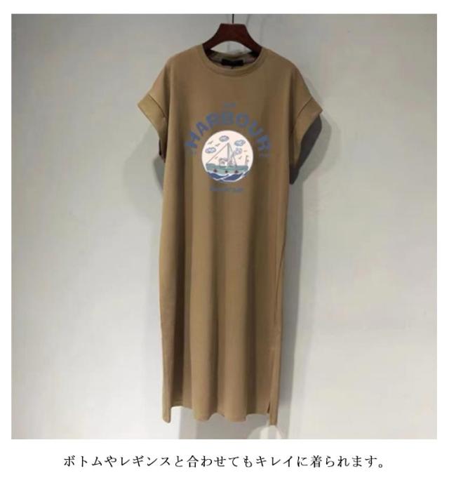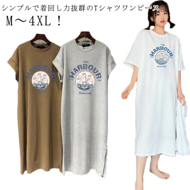 体型カバー tシャツワンピース 夏 ワンピース ロングワンピース tシャツワンピース レディース ワンピ 半袖 プリント 秋 きれいめ 丸首 春 スリット 大きいサイズ Tシャツワンピ 半袖 カジュアル インナー