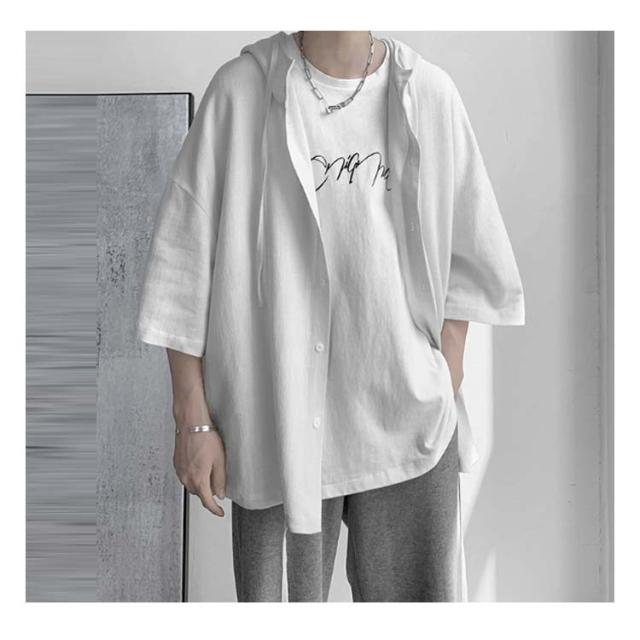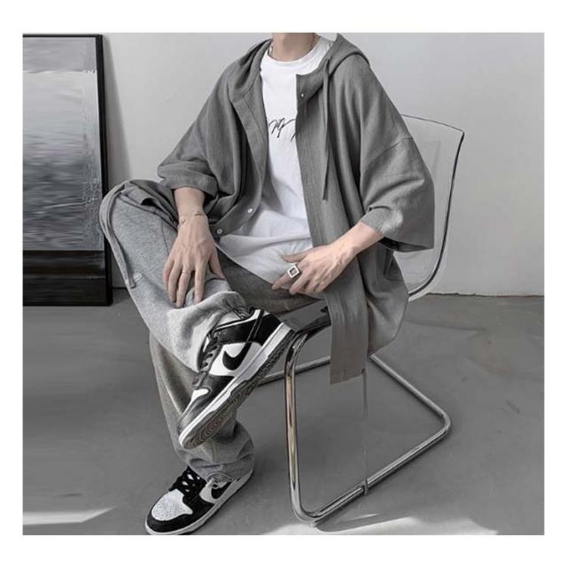 カーディガン 前開き 五分袖 五分袖 パーカー カジュアル 薄手 tシャツ ストリート系 トップス 半袖 大きいサイズ ライトアウター サマーパーカー フード付き 夏服 おしゃれ 大きいサイズ ゆったり 体型カバー 学生 無地 シンプル