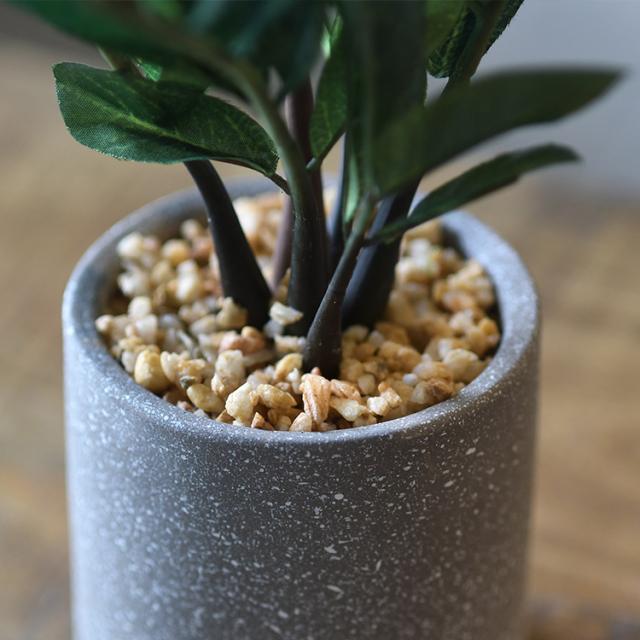 リアルな葉と幹、石土の質感を再現された小さいながらも存在感のあるインテリアグリーンです。