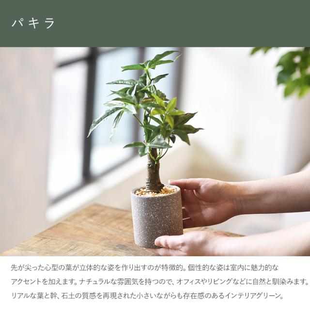リアルな葉と幹、石土の質感を再現された小さいながらも存在感のあるインテリアグリーンです。