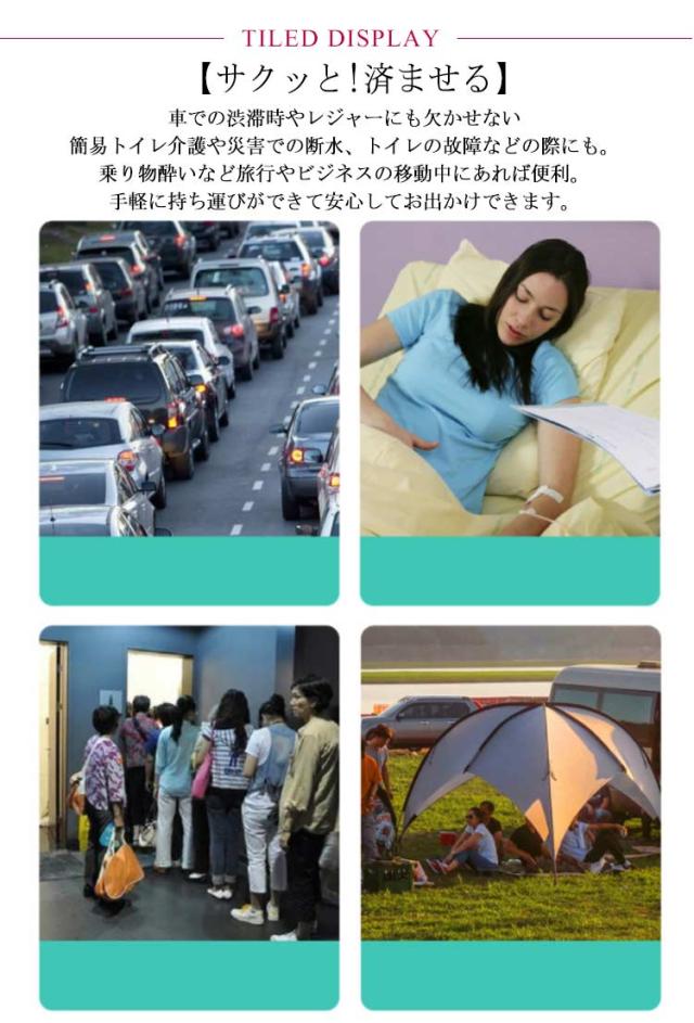 | おしっこを固めて、においを消す! 携帯ミニトイレ 4個セット 【緊急時に便利な携帯タイプ】:柔らかい素材を採用し、吸水シートタイプで、汚物袋も透けないので快適に衛生的に利用できます。 【700mlの吸収力・安全安心】:吸水性抜群!一般的な成人の排尿量は200~400mIですので最大700mlを吸水してくれる本商品は安心設計です。 【男女問わず子どもOK】:携帯ミニトイレは開口部が大きく開くから、コンパクトで使いやすく男女問わず誰でもご使用になれます。 【コンパクトで持ち運びに便利】:片手で使用可能。ワンタッチで簡単に使用できま・コンパクトで便利!余ったスペースに収納できます。 【消臭力、抗菌に優れて安心】:ポリエチレンと吸水ポリマーを使用する赤ちゃん用のおむつのような吸収シートを採用し、素早くゲル状に排泄物を固めて匂いも抑えられて、消臭力、抗菌に優れて、安心できます。 【密閉型デザイン】携帯ミニトイレをご使用後、袋のジッパーをしっかり閉める。すぐ捨てることができなくても臭わず快適!菌も漏らさず衛生的です。 【サクッと!済ませる】:車での渋滞時やレジャーにも欠かせない簡易トイレ介護や災害での断水、トイレの故障などの際にも。乗り物酔いなど旅行やビジネスの移動中にあれば便利。手軽に持ち運びができて安心してお出かけできます。 | |