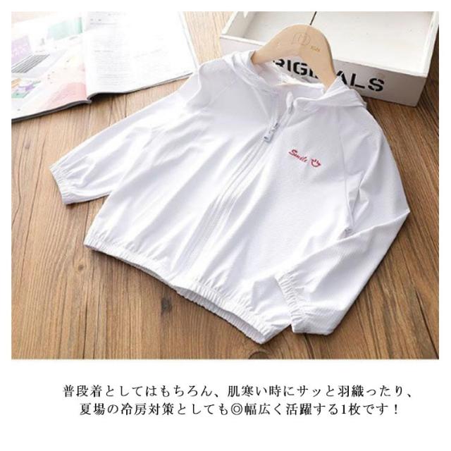 | UVカット機能で紫外線を95%カット 夏の日差しからお子様のお肌を守ります。 日焼け対策 熱中症予防 冷房対策に 一枚あると便利です。 サラっと柔らかく優しい肌触りの生地を使用しているので お子様にも安心してご使用いただけます。 通気性のよい素材で紫外線を通しません 普段着としてはもちろん、肌寒い時にサッと羽織ったり、 夏場の冷房対策としても◎幅広く活躍する1枚です! | |