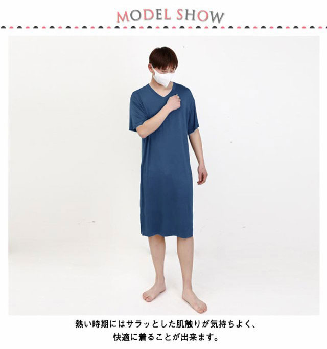 | 快適な睡眠に!ワンピースタイプのパジャマです。 熱い時期にはサラッとした肌触りが気持ちよく、快適に着ることが出来ます。 ゆったりとしたシルエットは、お風呂上がりに着用するのにとても開放感があり、リラックスできます。 ルームウェア、部屋着としてはもちろん、ホテル、旅行にも便利です。 パジャマの代わりや、入院・介護の準備など簡単に着用できる。 | |