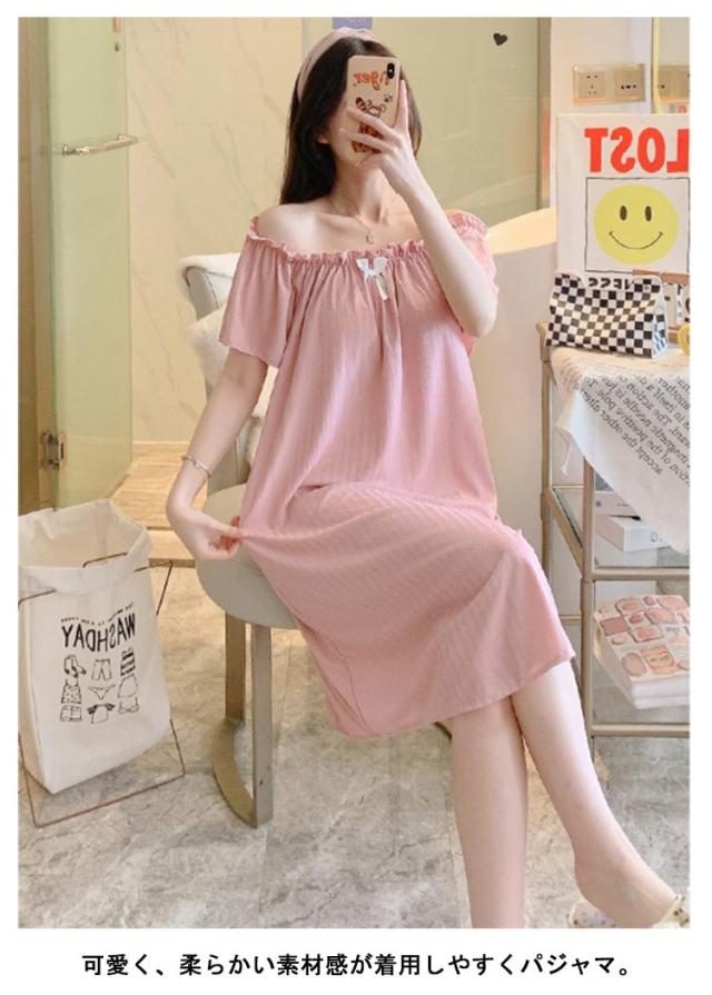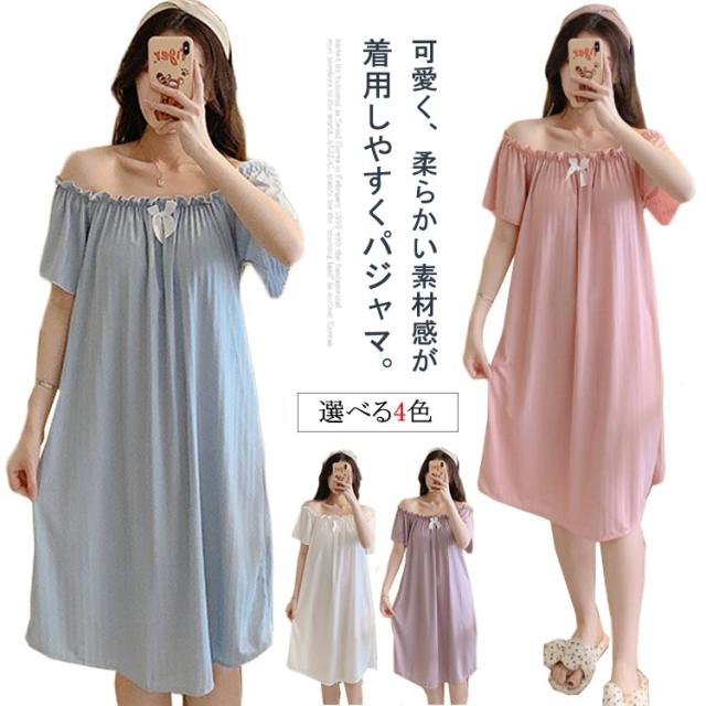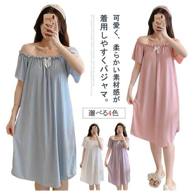 パジャマ パジャマワンピース 春 可愛い 涼しい パッド付き 半袖 カップ付き レディース 部屋着 膝丈 パジャマワンピース 寝間着 女性 ゆったり 女性用 リボン マタニティ ワンピース パジャマ 母の日 ギフト