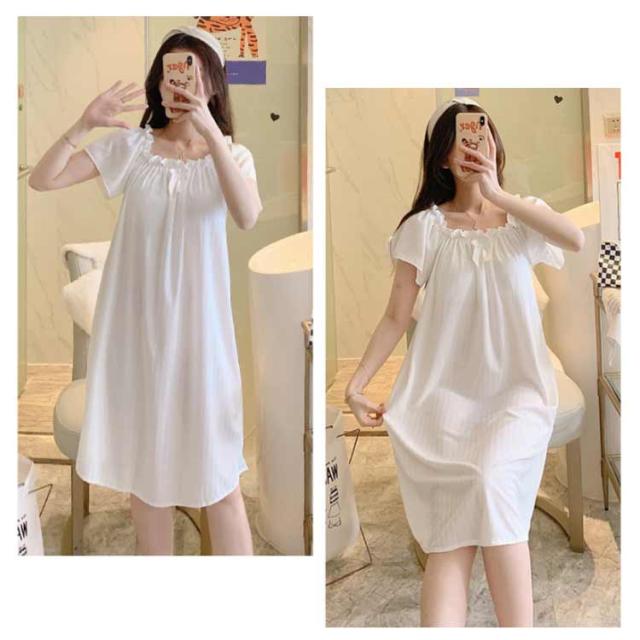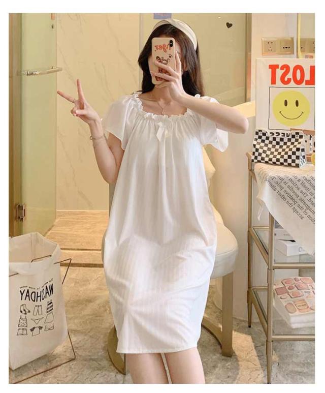 | 可愛く、柔らかい素材感が着用しやすくパジャマ。 肌触りが気持ちよい生地で、吸水性や通気性に優れており、汗をかいてもさらっとしていて、夏場は最適です。 ふんわり柔らかな着心地。 ロング丈なので体型を問わず、誰でもおしゃれになれるかわいい。 | |