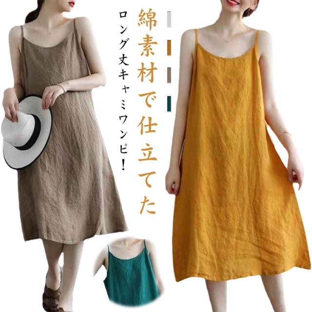キャミソールワンピース インナー キャミワンピ 重ね着 マキシ丈 レディース ロングワンピース 綿 コットン インナー ノースリーブ 無地 インナーワンピース 春夏 秋 薄手 シンプル ペチコート ゆったり 大きいサイズ 体型カバー お洒落 通勤 OL